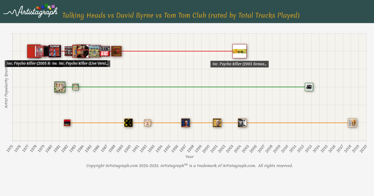 Talking Heads vs David Byrne vs Tom Tom Club (rated by Total Tracks Played)