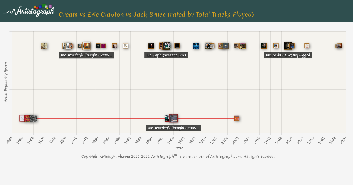 Cream vs Eric Clapton vs Jack Bruce (rated by Total Tracks Played)