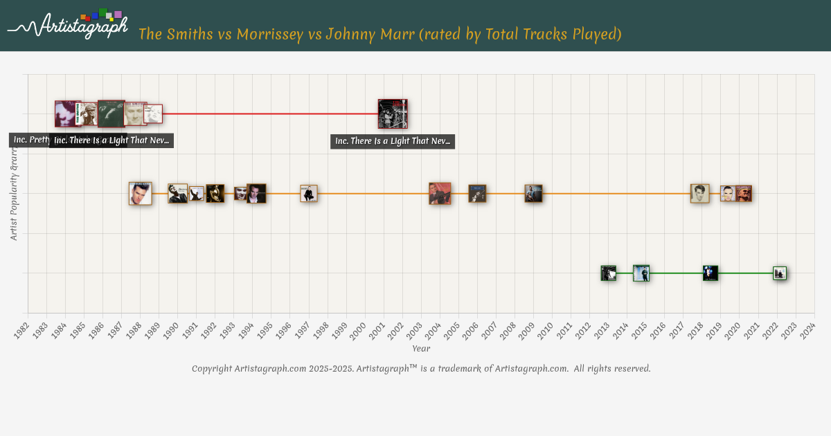The Smiths vs Morrissey vs Johnny Marr (rated by Total Tracks Played)